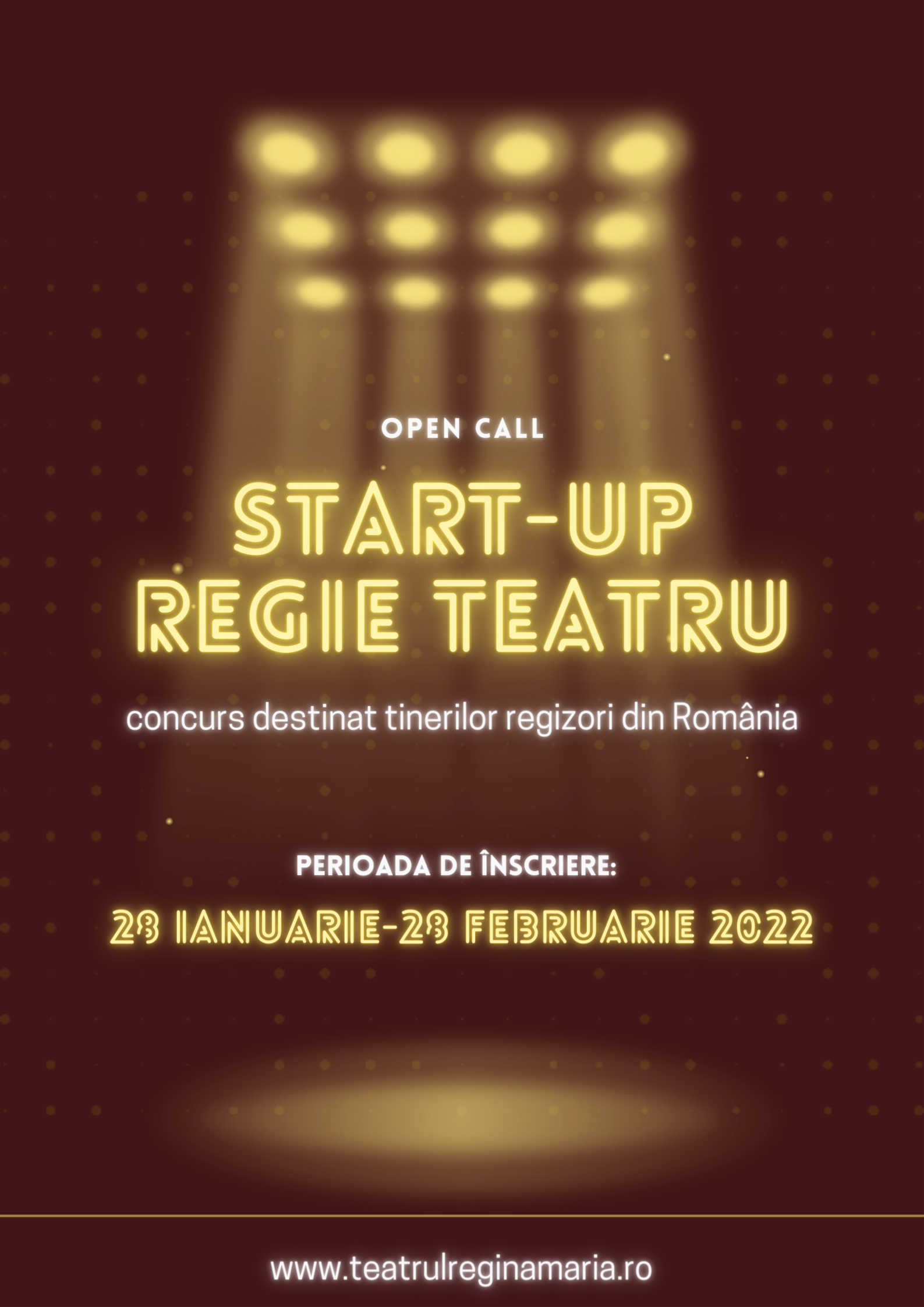 Astfel, începând din acest an, ne propunem organizarea unui concurs de proiecte regizorale, cu scopul sprijinirii tinerilor regizori absolvenți cu vârsta maximă de treizeci de ani. Ca urmare a acestei competiții, regizorul declarat câștigător va monta spectacolul propus la Teatrul Regina Maria, iar premiera acestui spectacol va avea loc în cadrul Festivalului Internațional de Teatru Oradea (FITO).