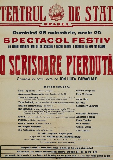 Realizare majoră a lui Caragiale, comedia “O scrisoare pierdută” demonstrează, fructificând valenţele hilarului, asemeni schiţei “Telegrame”, că disputa antrenează în fapt nu diferenţe de principii ideologice, ci doar de meschine interese personale; de îndată ce acestea sunt acoperite, conflictul se aplanează.
