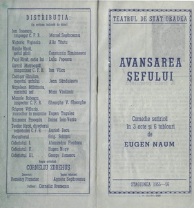 În cel mai desăvârşit spirit al ideologiei comuniste, piesa „Avansarea şefului” îşi propune să demonstreze cum omul nou, format şi educat de partid, poate aduce un suflu proaspăt chiar şi în cel mai îndepărtat sector de activitate: o gară de provincie. Bătrânul şef Vasile Bîrcă guvernează gara după bunul plac, dorind cu orice preţ să avanseze în Direcţie. Simbolul atitudinii sale înţepenite în trecut sunt vagoanele morii, pe care acesta le ţine blocate pe o linie, în vederea unor câştiguri personale. Lui i se opune Ion Ionescu, fost acar, ajuns prin străduinţă şi învăţătură impiegat de mişcare; ceferiştii din gară îl sprijină, văzând în el un om al timpurilor noi, care doreşte să instaureze un regim de cinste şi corectitudine. Finalul piesei recompensează lupta lor, căci impiegatul Ionescu este avansat în poziţia de şef al staţiei, iar vagoanele sunt deblocate, lăsând linia liberă.
