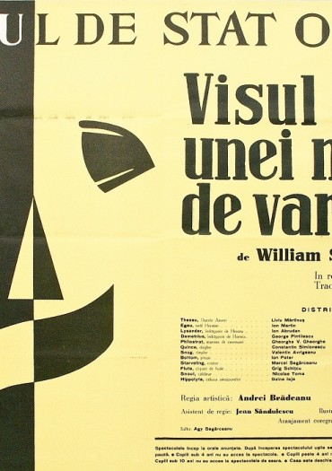 Având la bază surse de inspirație multiple – mitologia greco-romană, legendele Evului Mediu și folclorul englez – binecunoscuta creație shakespeariană „Visul unei nopți de vară” este o piesă a cărei temă, în vorbe și în fapte, este dragostea. E vorba de dragostea oarbă, lipsită de rațiune, sinceră și uneori capricioasă. Căsătoria ducelui Theseu cu Hippolyta, regina Amazoanelor, constituie cadrul piesei, a cărei acțiune începe și se termină în palatal ducelui. Conflictul este declanșat de o veche lege ateniană care le dădea cetățenilor puterea să aleagă soți potriviți fiicelor lor, iar în caz de nesupunere, să ceară chiar moartea acestora din urmă. Uzând de acest drept, Egeus îi cere ducelui Atenei condamnarea la moarte a fiicei sale, Hermia, pentru refuzul ei de a se căsători cu Demetrius, vlăstar al unei nobile familii ateniene. Situația inițială ne înfățișează iubirea reciprocă dintre Hermia și Lysander, precum și iubirea neîmpărtășită a lui Demetrius pentru Hermia și a Helenei (prietena Hermiei) pentru Demetrius. Pentru a scăpa cu viață și a-și salva iubirea, Hermia și Lysander hotărăsc să fugă prin pădure spre casa unei mătuși unde legea nemiloasă nu are nicio putere. Ei sunt urmați în taină de Helena și de Demetrius, pătrunzând astfel cu toții pe tărâmul miraculous al