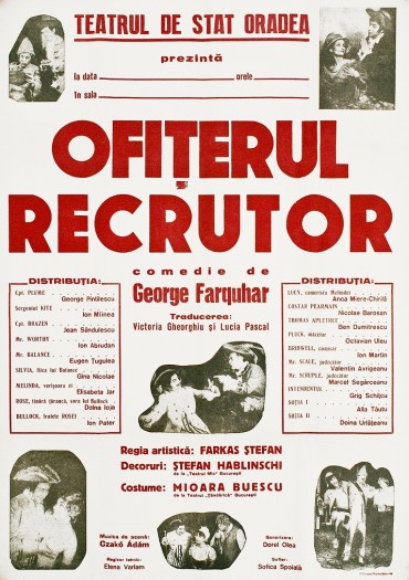 Inspirată din experienţa personală a dramaturgului irlandez, „Ofiţerul recrutor” înfăţişează aventurile ofiţerilor Plume şi Brazen, aflaţi în Shrewsbury pentru a recruta soldaţi. Comedia ironizează mascarada înrolări soldaţilor meniţi a o sluji pe regina Angliei şi mirajul banilor câştigaţi din armată care i-ar salva pe ţăranii simpli de la sărăcia cotidiană. Acţiunea bogată şi colorată amestecă viaţa zgomotoasă a armelor cu intrigile sentimentale, inlcuzând deghizări şi confuzii, replici cu două tăişuri şi mult umor sănătos care asigură succesul de public al piesei.