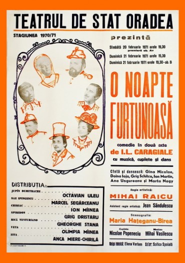 „O noapte furtunoasă”, cunoscuta piesă a lui I.L.Caragiale evocă un timp nu prea îndepărtat şi deloc idealizat, un timp în care caracterele umane oglindesc moravuri şi situaţii absolut hilare, demne de subliniat, întrucât putem regăsi tipologii actuale, făcând doar un mic exerciţiu de recunoaştere. Jupân Dumitrache Titircă, zis şi Inimă-Rea, căpitan în garda civilă şi militant politic liberal, este un om care se respectă şi vrea să fie respectat, cu precădere în „onoarea lui de familist”. Foarte revoltat din pricina „bagabonţilor” care au umplut lumea, Dumitrache îi povesteşte amicului Nae Ipingescu cum de două săptămâni, un „amploiat” îi fierbe zilele, uitându-se după cucoane: Veta – soţia şi Ziţa – cumnata sa. Veta, însă, căsătorită de tânără cu Dumitrache, bărbat „copticel”, are o aventură amoroasă cu Chiriac, omul de încredere al căpitanului. Culmea comicului este atinsă când din stradă, Dumitrache, care îşi face rondul de noapte, îi strigă lui Chiriac, strâns îmbrăţişat cu Veta, să vegheze la onoarea lui de familist.