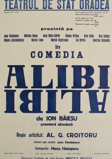 Sub aparenţa unei comedii care desfată, piesa „Alibi” a lui Ion Băieşu analizează structura unor fenomene sociale, oferind totodată un remediu problemelor descrise cu ochi critic. Punctul de plecare este povestea unui fals accident de circulaţie, episod care, după mărturisirea autorului, este inspirat dintr-un fapt real. Centrul de interes al piesei rezidă însă în creionarea lui Gripcă, şeful sectorului cadre şi personal, personaj aproape sinistru, capabil să înlăture pe căi artificiale oamenii angajaţi pe drumul firesc al carierei profesionale. El îşi etalează fără scrupule arsenalul de care dispune, de la mitocănie la şantajul cu divulgarea secretelor intime, iar apropierea de realităţi cunoscute dă naştere unei tensiuni aparte în piesă. Personajul Bebe este, la rândul său, o figură excentrică, un cascador miraculos, un globe-trotter care doreşte să înconjoare pe jos pământul. Prin iubirea cu studenta Gabi şi prin invitaţiile de a redescoperi iarba cu rouă şi serile cu greieri, Bebe devine mesagerul întoarcerii spre umanitate, iar aceasta este, poate, o parte din remediul căutat şi imaginat de dramaturg.