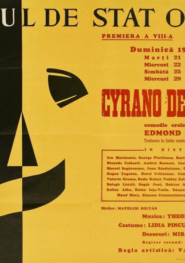 „Cyrano de Bergerac” este o piesă în cinci acte scrisă aproape în întregime în alexandrini, urmând ca formă şi stil tradiţiile teatrului romantic. Cyrano este un muschetar rebel îndrăgostit de verişoara lui, Roxane. Complexat de nasul său enorm, el nu îndrăzneşte să îşi dezvăluie sentimentele sau să o curteze şi, din disperare, acceptă să îşi protejeze rivalul, pe Cristian, de care e îndrăgostită Roxane. Mai mult, Cyrano chiar îl ajută să o seducă pe Roxane prin declaraţii şi scrisori pasionale. Treptat, totuşi, Cristian îşi dă seama că Roxane nu îl iubeşte pe el, ci spiritul şi inteligenţa de care Cyrano face dovadă în scrisori. În momentul în care cei doi se hotărăsc să dea totul în vileag, Cristian e ucis în luptă, iar Cyrano decide să păstreze tăcerea. Cincisprezece ani mai târziu, în timp ce trăieşte retrasă la o mănăstire, Roxane înţelege totul. Este însă prea târziu, căci Cyrano, rănit, moare în braţele ei. Prezentată ca o coproducţie a secţiilor română şi maghiară a Teatrului de Stat din Oradea, „Cyrano de Bergerac” a constituit o reuşită atât prin conturarea atmosferei istorice şi prin redarea eroismului de capă şi spadă, cât şi prin caracterul personajelor, purtătoare de valori mereu actuale.
