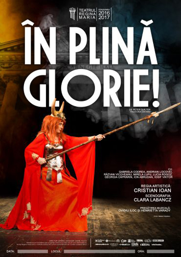 „Glorious!” is a comedy inspired by the life of Florence Foster Jenkins, known in history as the worst opera singer in the world, attributing to her the ironic title of „First Lady of the glissando”. Passionate with music until pathetic, despite the irony of some and the ridiculous desire, she succeeds and her concerts are sold out. The climax of his career is the recital on one of New York's most prestigious concert venues: Carnegie Hall. Her success wouldn't have been possible without the financial resources at her disposal and the support of some devoted friends. An extraordinary show, where the border between courage and naivety disappears. A character willing to give up anything to fulfil her dream. A humorous story, which, paradoxically, has made history and managed to inspire even today.