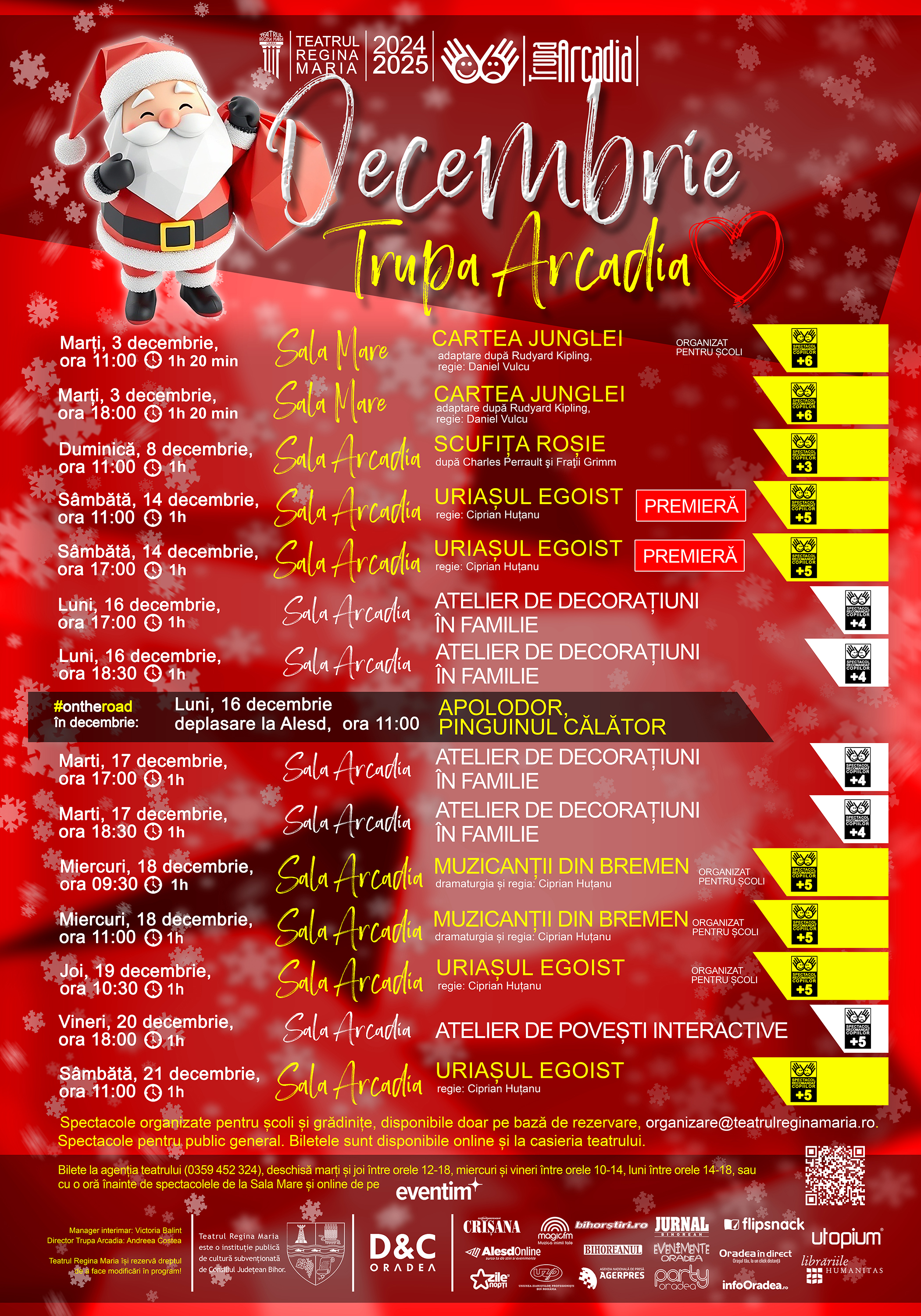 Următoarea reprezentație este programată sâmbătă, 21 decembrie, de la ora 11:00, la Sala Arcadia.