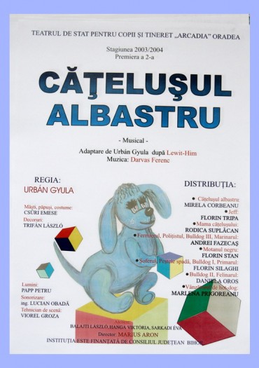 „Primul spectacol al stagiunii a fost o premieră din mai multe puncte de vedere. Un regizor din Ungaria, Urbán Gyula a montat acelaşi spectacol, şi la secţia română, şi la secţia maghiară. În limba maghiară piesa jucată se numeşte «Hupikék Péter», ceea ce s-a tradus în româneşte «Căţeluşul albastru». Aceasta s-a bucurat de aprecierea micilor spectatori de la ambele secţii.” (Ciprian Zopota, Informaţia, 2004)