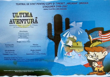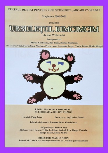 „A urmat un lucru inedit în istoria Teatrului Arcadia, este vorba de ideea montării unui spectacol, în variantă românească («Căţeluşul albastru») şi maghiară («Hupikék Péter»), care s-a bucurat de un succes deosebit. Ideea a aparţinut lui András Szőke Kavinszki, şef de secţie în cadrul acestei instituţii.” (Loredana Nicoară, Crişana, 9 august 2004)